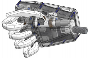 Addressing the current challenges in functionality and cost, Paul Ventimiglia created the design for an affordable anthropomorphic prosthetic hand. This novel design incorporates five individually actuated fingers in addition to powered thumb roll articulation, which is unseen in commercial products. Fingertip grip force is displayed via LEDs for feedback control. The hand contains a battery and microcontroller. Multiple options for signal input and control algorithms are presented. A prototype will serve as a platform for future programming efforts. Read More (PDF) on Ventimiglia's MQP.