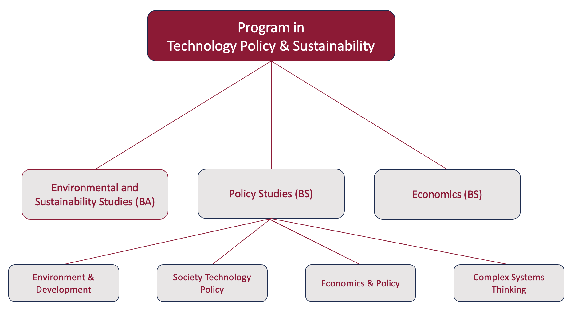 Under our Program, we offer three degrees: Environmental & Sustainability Studies; Policy Studies; and Economics. The Policy Studies Degree has four options for concentration.