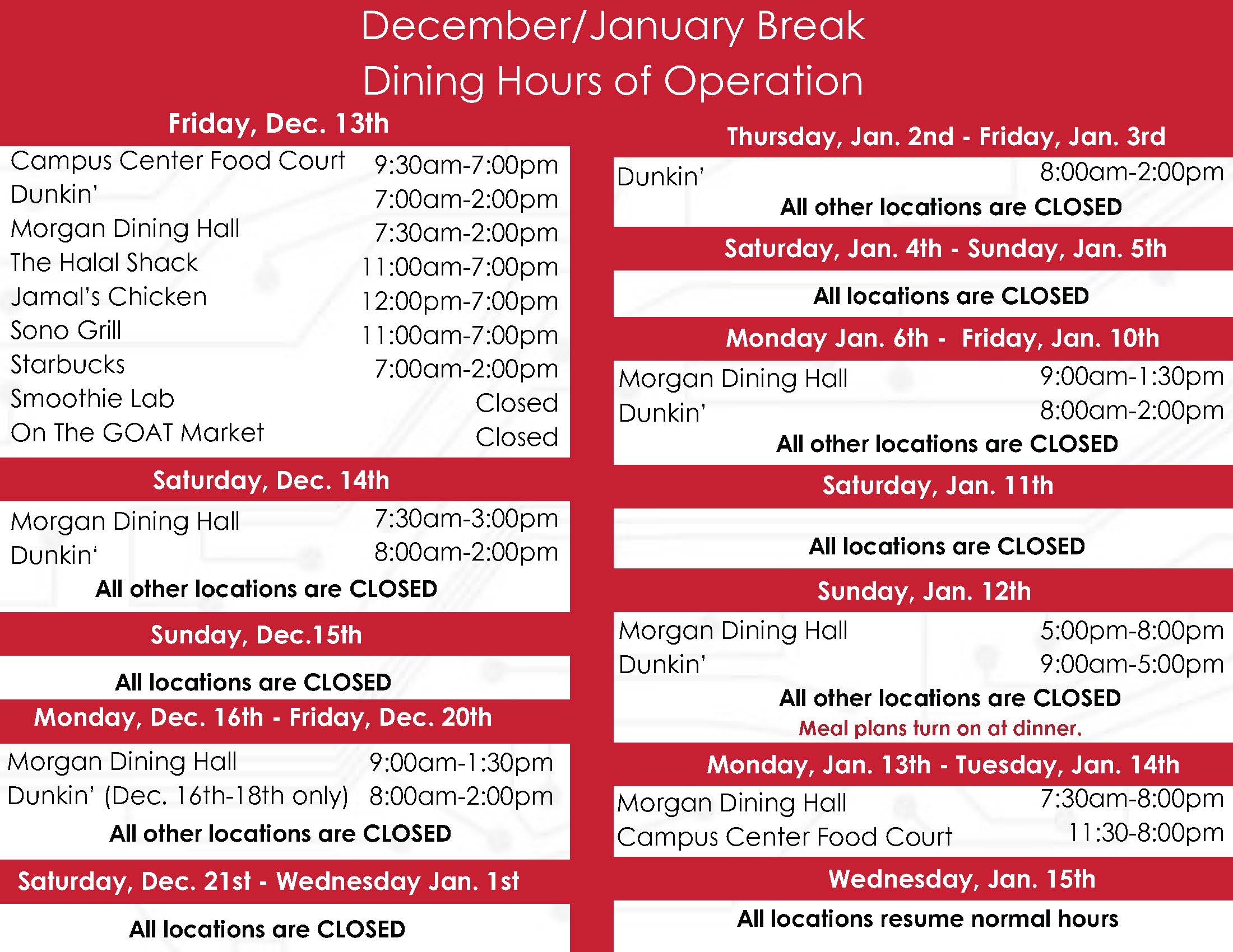 Please take notice of our adjusted hours of operation during the B/C Term break.