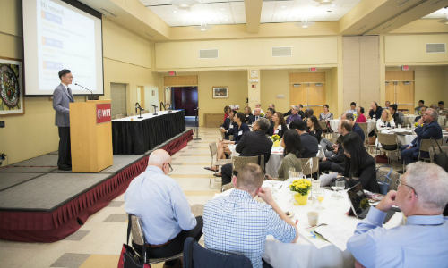 The day-long event was attended by nearly 100 people from industry, academia and government including a delegation of colleagues from Tsinghua University in Beijing China. President Laurie Leshin welcomed guests and presented the Howard W. Emmons Distinguished Lecture Award to Professor Weicheng Fan who delivered a presentation on Fire Safety Science and Public Safety Technology in China. Professor Fan is the Director of the Institute of Public Safety Research at Tsinghua University and is renowned for his work in fire and public safety. Other special guests included: