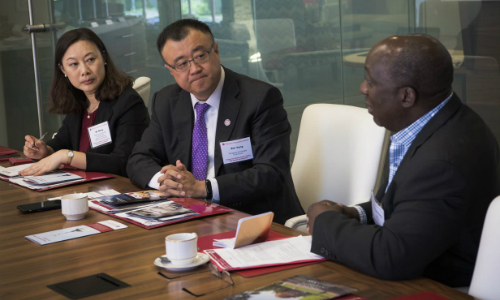 Worcester Deputy Chief Martin Dyer meets with WPI students and CGPS Co-Director, Professor Jianyu Liang