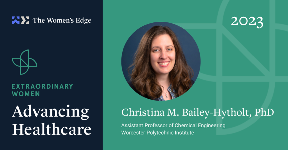 Chemical Engineering Professor Christina Bailey-Hytholt will be receiving a 4th Annual Extraordinary Women Advancing Healthcare Award from The Women’s Edge (formerly The Commonwealth Institute), the leading nonprofit organization devoted to advancing women leaders. This award is the first of its kind in the nation, reaching across diverse sectors of healthcare – from life sciences, healthcare education and systems, to healthcare foundations, patient care, and public health. It recognizes and celebrates remarkable healthcare leaders in Massachusetts for their outstanding career achievements and resounding impact.