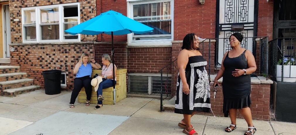 Outdoor multifunctional shade structures installed in Point Breeze neighborhood of Philadelphia to promote community resilience to extreme heat. Photo: Nicole Pearl, Drexel University