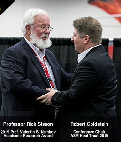 Fluxtrol Inc., Auburn Hills, Michigan, presented the Prof. Valentin S. Nemkov Academic Research Award during the ASM International Heat Treat 2019 conference in Detroit. Robert Goldstein, the Conference Chair and Fluxtrol’s Director of Engineering, presented the prestigious award to Professor Rick Sisson, Worcester Polytechnic Institute (WPI) and Center for Heat Treatment Excellence (CHTE) for winning the Prof. Valentin S. Nemkov Academic Research Award. Dr. Sisson received $2500 for excellence in academic research in the field of thermal processing. The award supports research activity at the academic researcher’s institution.
