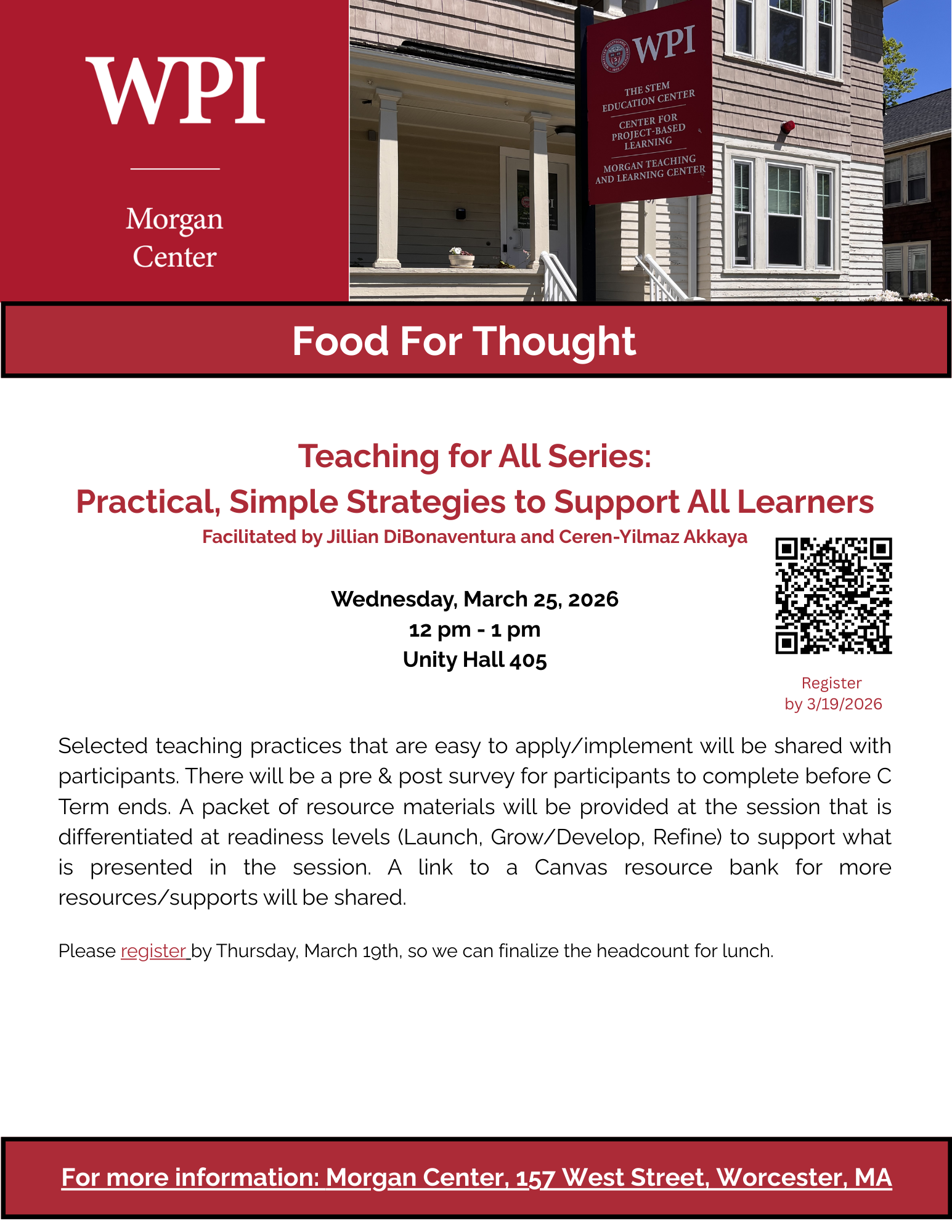 PREVIOUS ANNOUNCEMENT Goat Impact Summer Accelerator 2026 (GISA) Applications Are Open! NEXT ANNOUNCEMENT Knowledge Management and Generative Technologies, Dr. D. Matthew Boyer, Clemson University Food For Thought: Teaching for All Series: Practical, Simple Strategies to Support All Learners Department(s): Morgan Teaching & Learning Center March 18, 2026 Registration Link