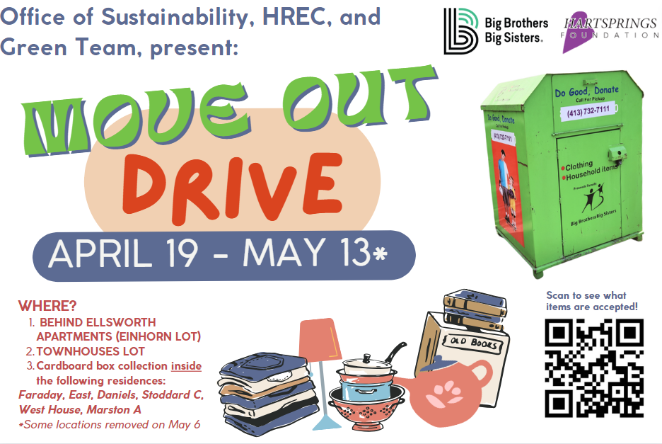 The Hartsprings Donation Bins are back this year for 2024's move out, starting April 19 and going through May13*. Place your unwanted clothing, household items, shoes, books, games and more in the exterior bins or new interior cardboard boxes placed along campus.