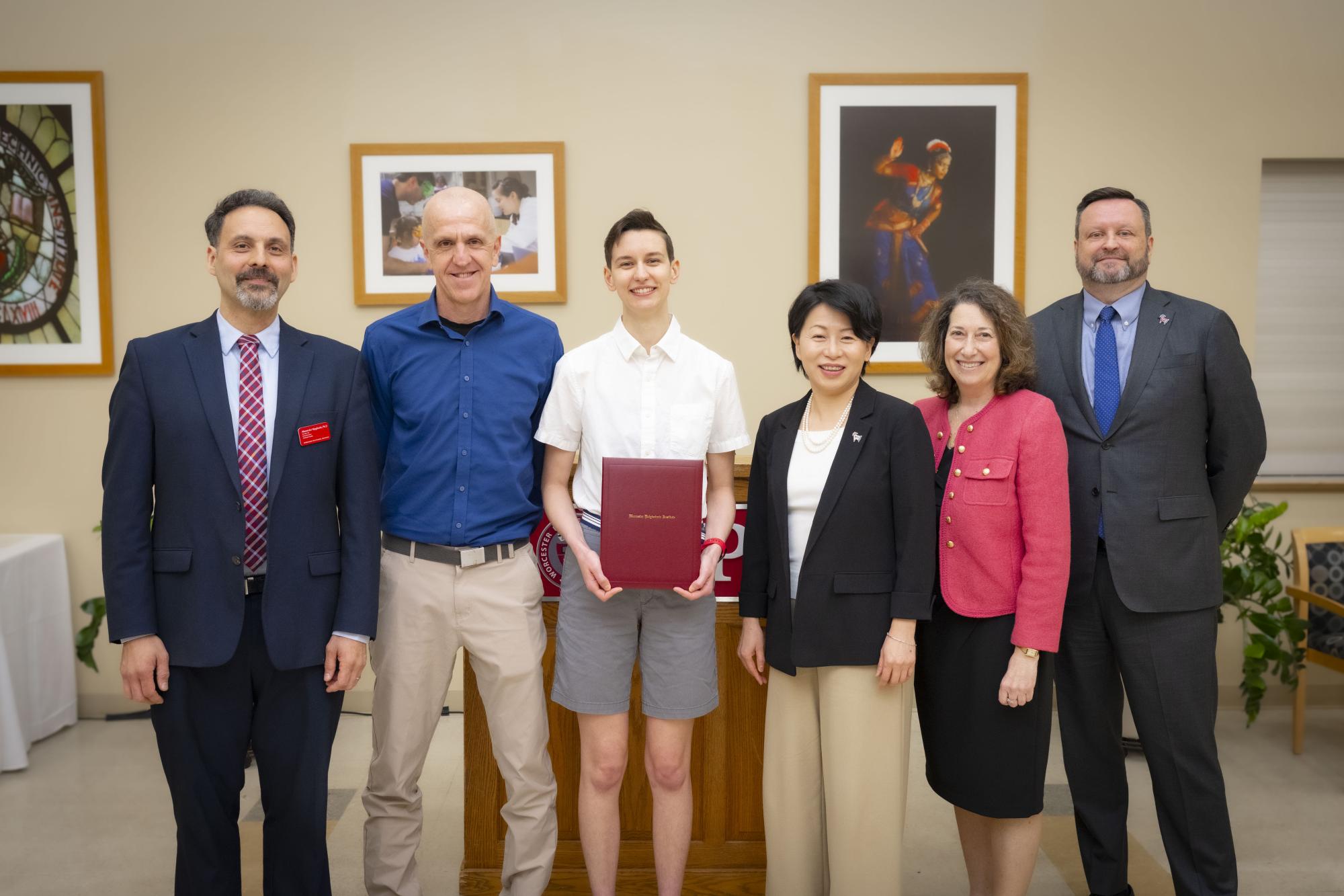 l to r: Associate Dean of Graduate Studies Alex Wyglinski, Secretary of the Faculty Mark Claypool, Anna Mederer, President Grace Wong, and Provost Andrew Sears