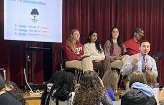On Feb. 5, at Central Tree Middle School in Rutland, Lopez and several current WPI students joined an assembly, “Rethinking Technology Use to Balance and Empower Our Lives.” Lopez and his students explored the impacts of technology on how we think, feel, and interact with others, and examined tools and strategies that could lead to a healthier, more balanced life.