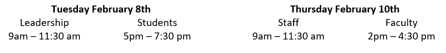 with sessions tailored for Students, Faculty, Staff, and Leadership