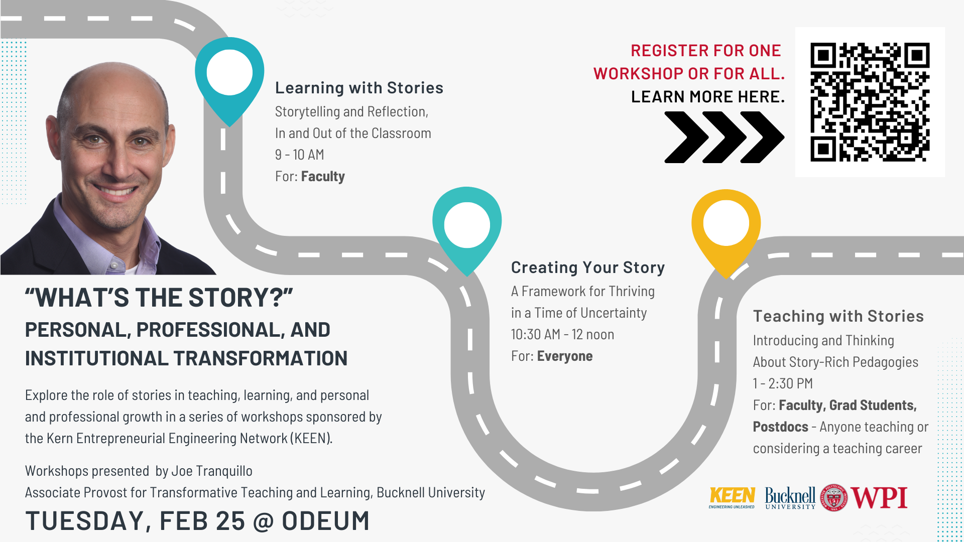 Explore the role of stories in teaching, learning, and personal and professional growth in a series of workshops sponsored by the Kern Entrepreneurial Engineering Network (KEEN).