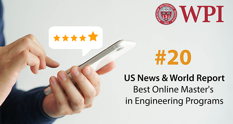 Worcester Polytechnic Institute (WPI) is thrilled to announce that it placed higher this year among the nation's top colleges and universities in the annual U.S. News & World Report ranking. Climbing up 10 spots this year, WPI is now listed as #20 out of 104 in Best Online Master's in Engineering Programs. Schools are ranked according to their performance across a set of widely accepted indicators of excellence such as faculty credentials and training, expert opinion, student excellence, services and technologies, and engagement.