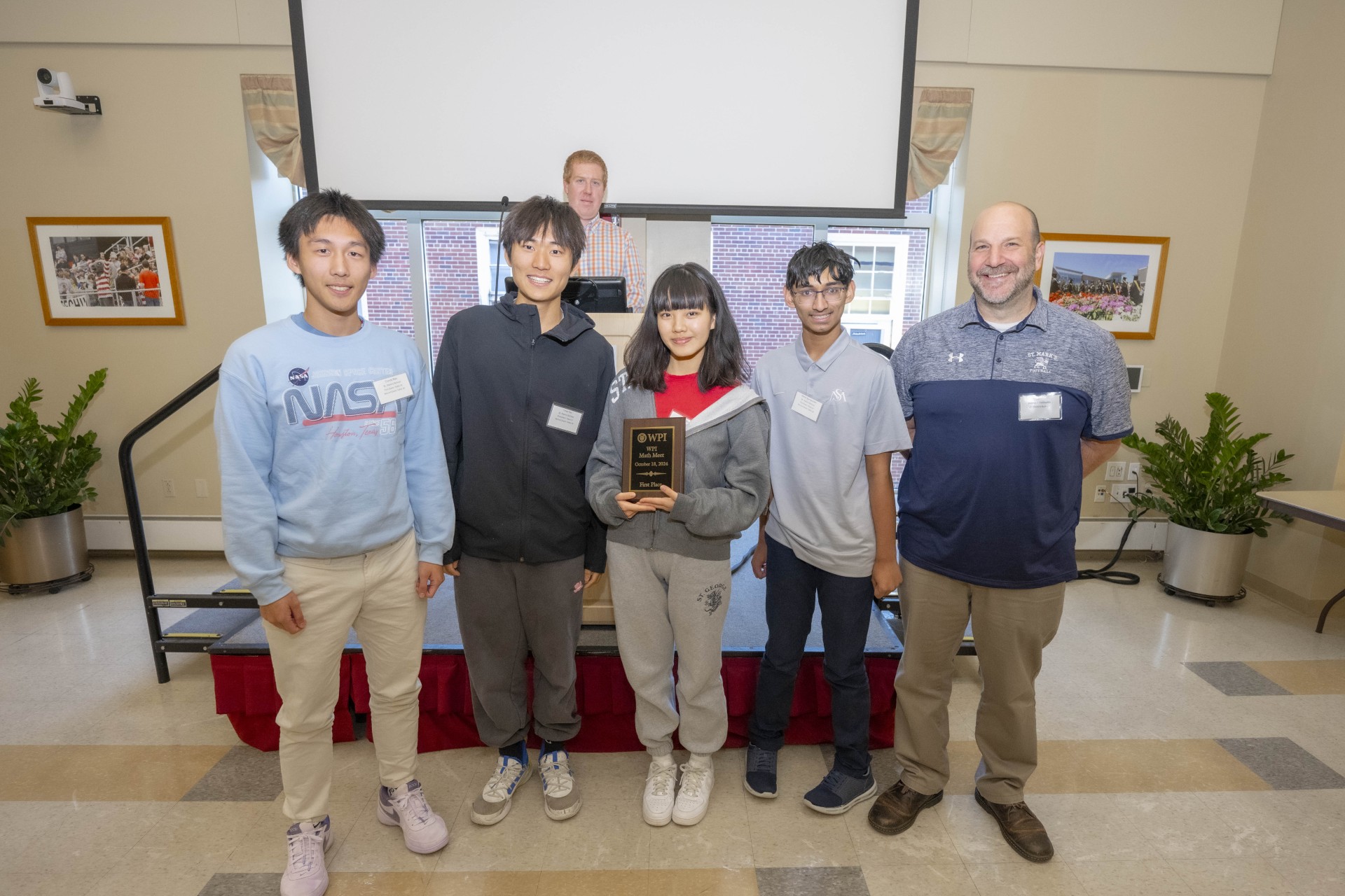 Picture is the top-scoring team, St. Mark’s School from Southborough, MA. A big congratulations to the team members, Condy Bao, Laura Xia, Yiran Hu, and Nikhil Byrapuram, and their advisor and teacher, Edward Valitutto!