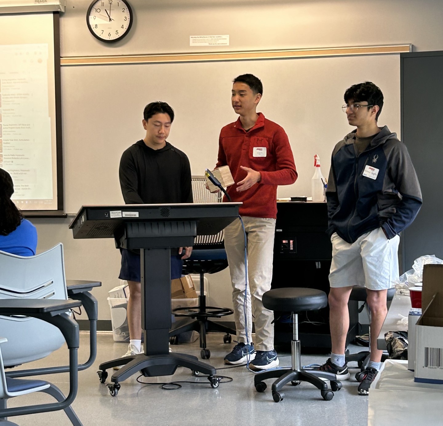 Mass Academy students Joseph Yu, Travis Tran, Kayla Vallecillo, and Faculty Kristen Small engaged students in building their own hydraulic boxes. By connecting tubes and attaching gears, students transformed a simple box into a hydraulic-powered marvel, bringing their creations to life.