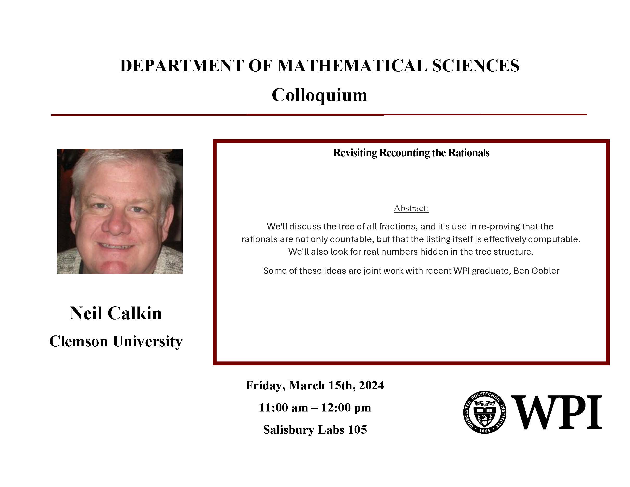 Mathematical Sciences Department Colloquium - Neil Calkin, Clemson University