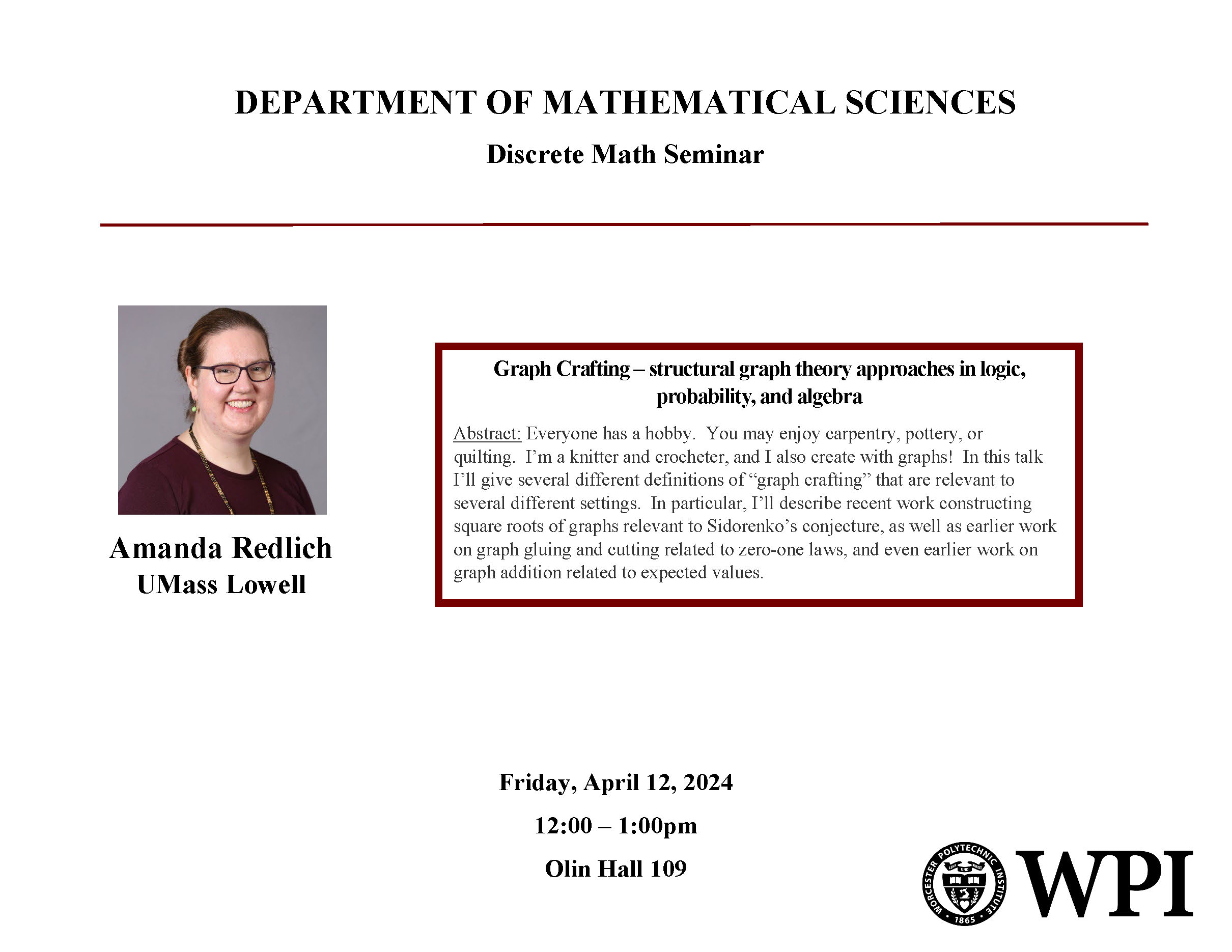 Mathematical Sciences Department Discrete Math Seminar - Amanda Redlich, UMass Lowell