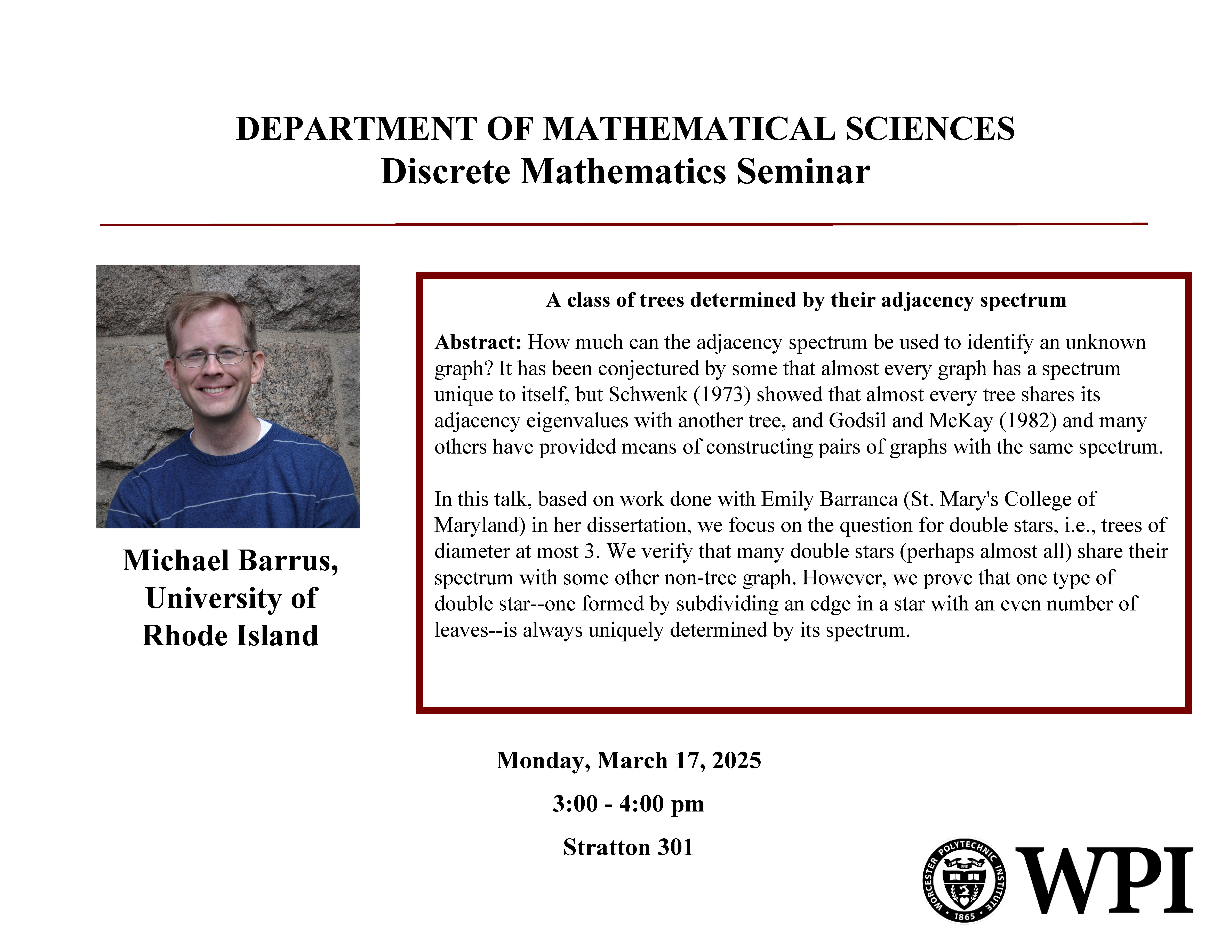 Mathematical Sciences Department Discrete Math Seminar - Michael Barrus, University of Rhode Island