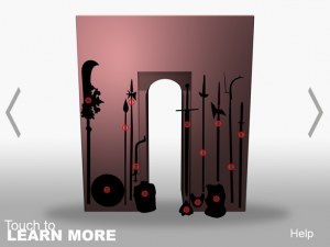 This interactive program developed by an IQP team is on an iPad in the Knights gallery, allowing visitors to select objects and read more information on them.