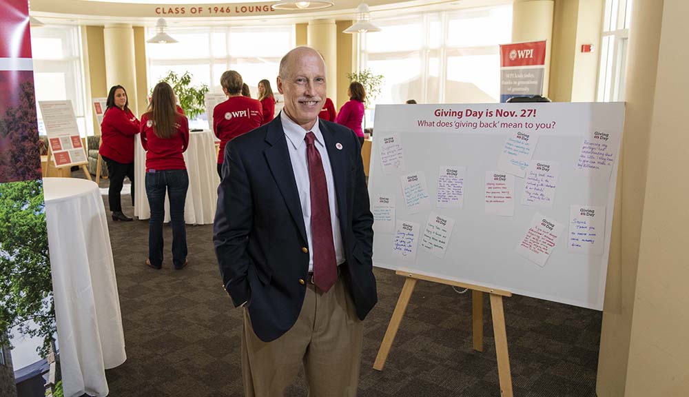 Giving Day really started to resonate with me when I was fortunate enough to have my oldest son attend WPI, and we used the tuition benefit. I, and my son, were receiving this wonderful benefit. It significantly lightened the load on our family and on my son from a loan perspective, a long-term investment perspective. I had an obligation to give back to the institution that has given so much to me. The tuition benefit, even if you use it if a son or daughter attends another institution, is something WPI doesn’t have to do. But that’s what made me pick up the mantle of wanting to do more or to speak about it more.
