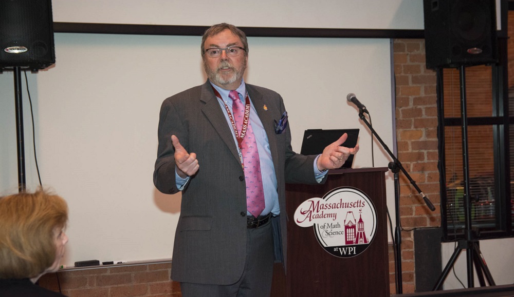Founded in 1992, Mass Academy is a public high school for academically advanced 11th and 12th grade students. The only one of its kind in Massachusetts, the school enrolls juniors in a rigorous curriculum with an emphasis on math and science, while seniors take freshman classes at WPI, completing a full year of college before having graduated from high school. Since its inception, Mass Academy has graduated over 1,000 students who are ready to make an impact in the world around them, so it was only fitting that the day began with the presentation of student work.