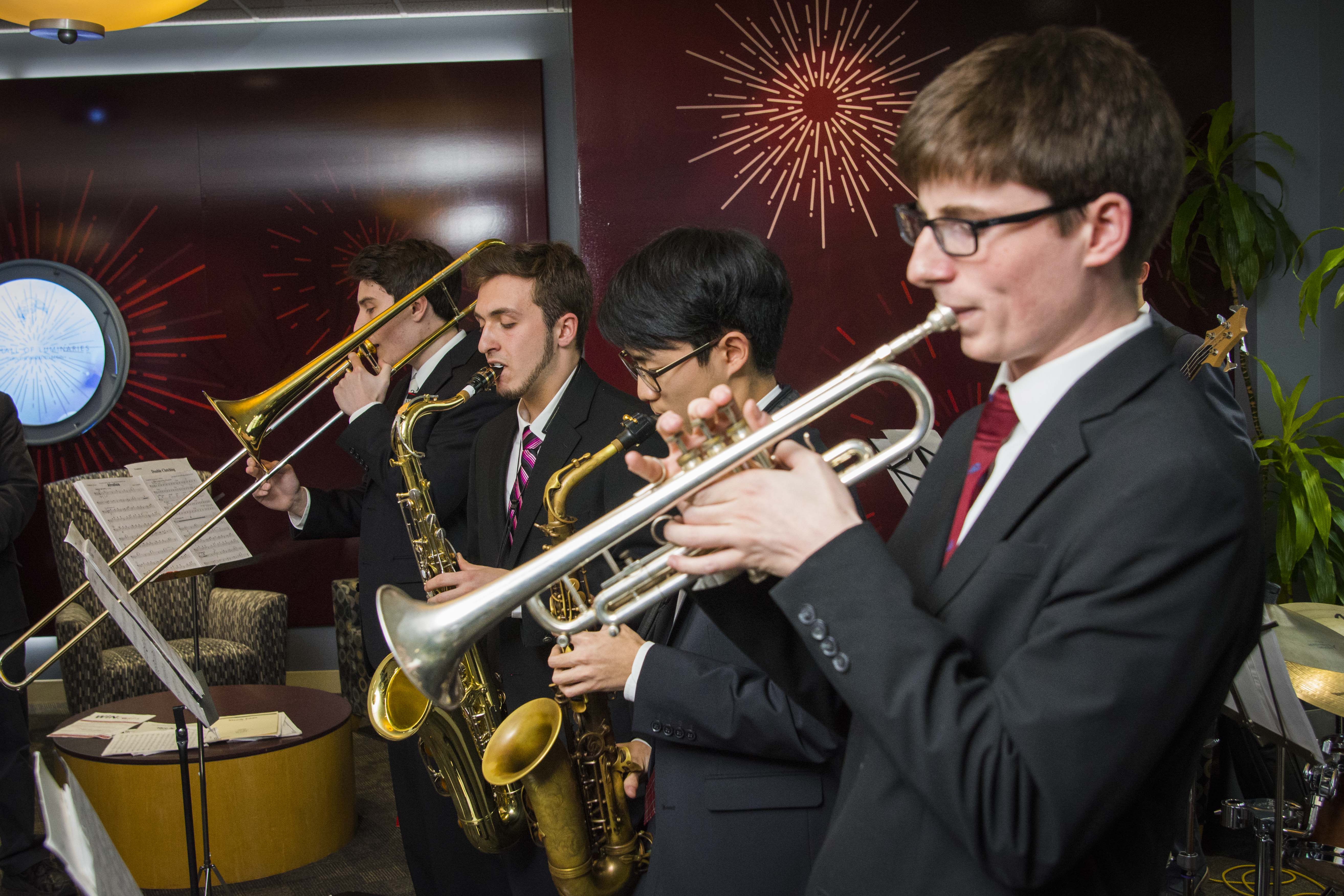 On April 3, WPI's Neuroscience & Society hosted “Music and the Brain,” a spring seminar with a lecture by Aniruddh D. Patel, PhD, and musical performances by Sergio Salvatore ’02; Scott Barton, assistant professor of music and a pianist, composer, and musical roboticist; and the WPI Jazz Ensemble.