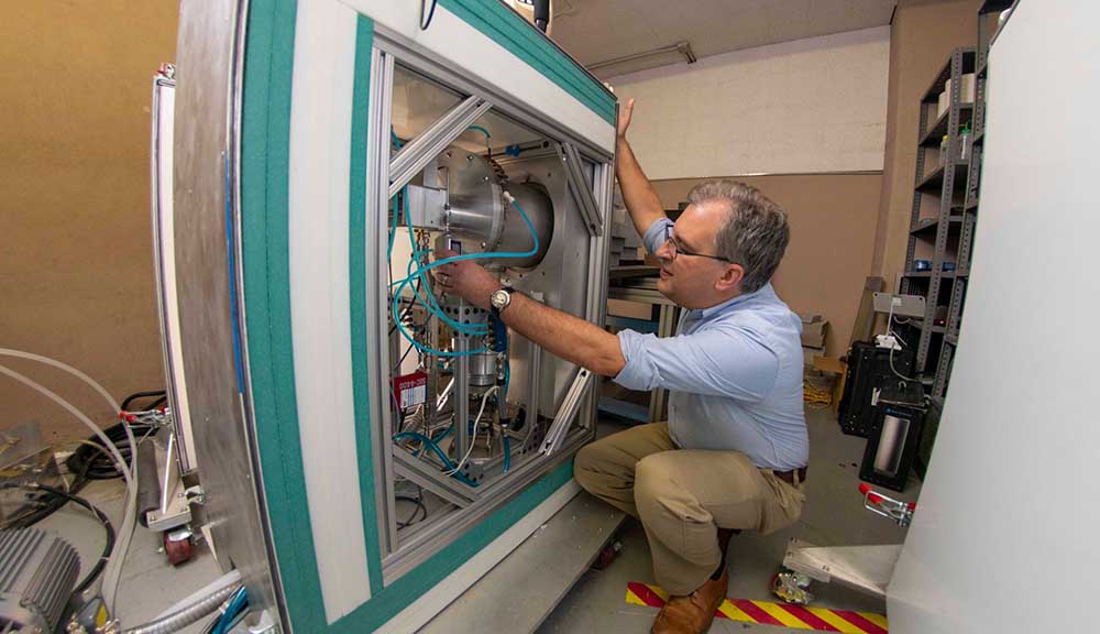 WPI received $600,000 from the Nuclear Regulatory Commission to address nuclear workforce and research needs. Professor David Medich inspects the neutron generator he is developing for medical imaging.