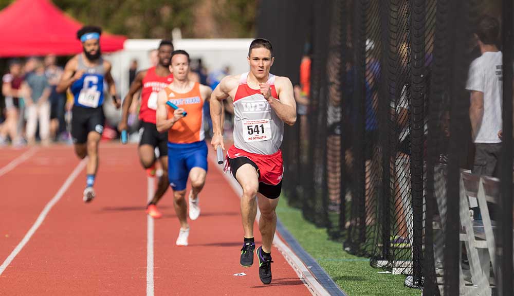 Graduating senior Warren Staver anchored the champion 4x400-meter men’s relay at the Division III New England Championships on May 5.