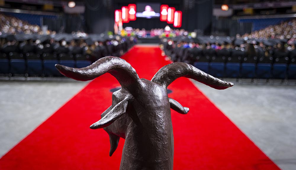 Gompei was more than ready to cheer on graduates as they prepared to cross the stage during this year’s Graduate Commencement Ceremony.