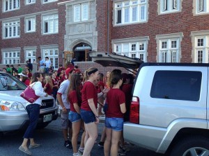 The campus was swarming with cars, pickup trucks, and SUVs today, disgorging undergraduates, their parents, friends, and siblings – as well as a few thousand boxes, laptops, pillows, and assorted dorm flotsam as Move-In Day swung into motion.