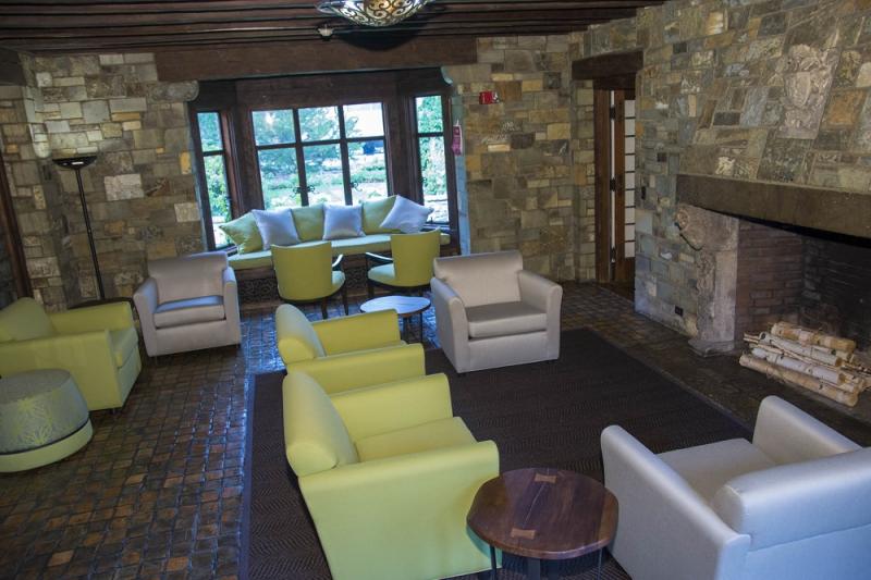 Outfitting the space and choosing the menus was the collaborative effort of a team that, in addition to Richman and Perlow, included Joe Kraskouskas, director of dining services for Chartwells; Tanja Dominko, associate professor of Biology and Biotechnology; Nick Palumbo, project manager with the facilities division; and Sharon Jerome, manager of The Quorum. Seating arrangements feel inclusive, offering small tables for groups of two or more in the dining room and additional chairs placed in groupings in the sunroom. Richman hopes that outside seating will be added in the future to offer a view of the Higgins House gardens from the stone patio. The mellow greens and grays of the soft seating complement the stone walls and floor of the sunroom; bistro chairs and tables and a white service island complement the stone countertops and the existing dark woods of the dining room.