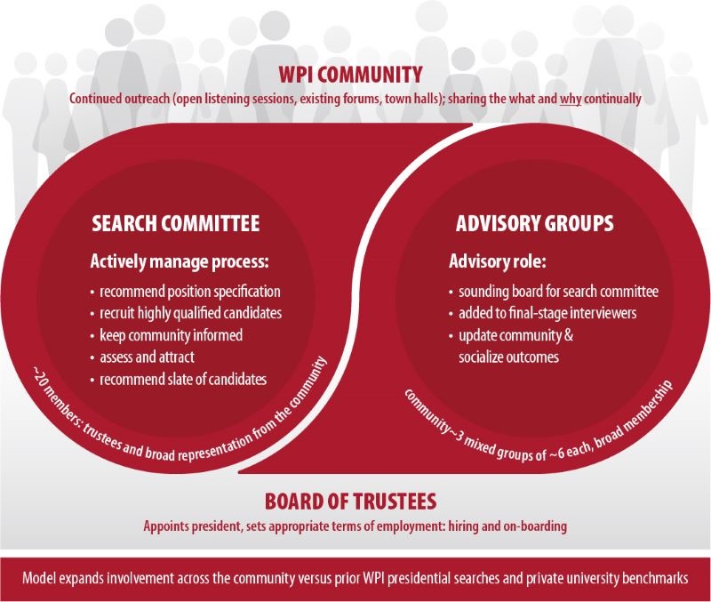 The WPI Board of Trustees will fulfill its institutional responsibility to choose a president informed by the recommendations from the search committee and perspectives from the broad and diverse group of individuals engaged throughout the search process.