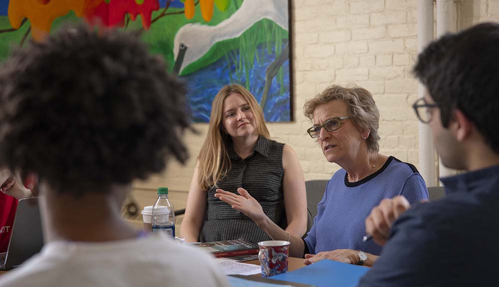 Since then, the Women Authors Evening has become an annual occasion. The creativity began early afternoon of April 11 when Boston author Anita Diamant visited WPI’s “Travel Writing” class, taught by Kate McIntyre, assistant professor of creative writing. Diamant, known for her award-winning novel, The Red Tent, workshopped students’ travel writing essays and imparted advice for their future projects: Do your research while dipping into creative writing. “The more you know about something," she said, "the more you understand about the world, and the richer the experience you’ll have.”