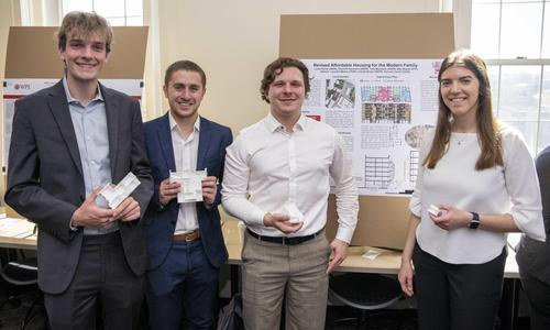 “It’s inspiring to see the creativity and skills that our students bring to these projects, as well as the professionalism with which they present their research,” says Arne Gericke, interim dean of undergraduate studies and director of the Office of Undergraduate Research, Design & Creative Activity. “Their experience managing a major project like this—including identifying a problem and researching all of the implications and possible solutions while also managing team dynamics over an extended period of several months—sets them up well for success not only in their first jobs after graduation but throughout their careers.”