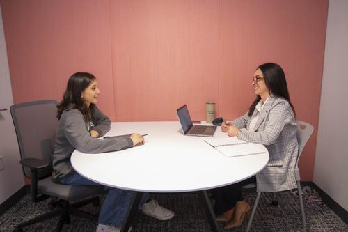 Tara Checko ’25 meets with her mentor Erin Spadavecchia ’05