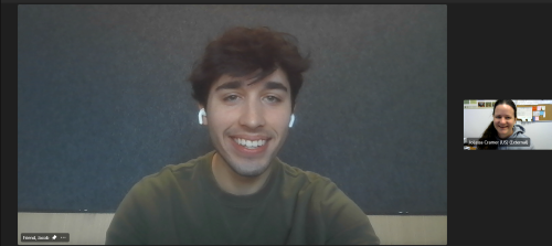 A virtual meeting allows a mentor and mentee to connect. Photographed: JoLeisa Cramer, manager, field science operations – northeast, National Ecological Observatory Network (NEON); Jacob Friend ’25 Environmental & Sustainability Studies, Data Science