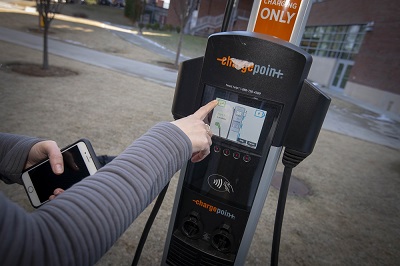 The initiative fits into the university’s Sustainability Plan—representing the culmination of just over a year of work by a dedicated group of faculty, staff, and students from across campus—by supporting the use of an alternative to gasoline-powered vehicles. Electric vehicles, or EVs, help reduce carbon emissions, says associate professor of civil and environmental engineering and director of sustainability Paul Mathisen.