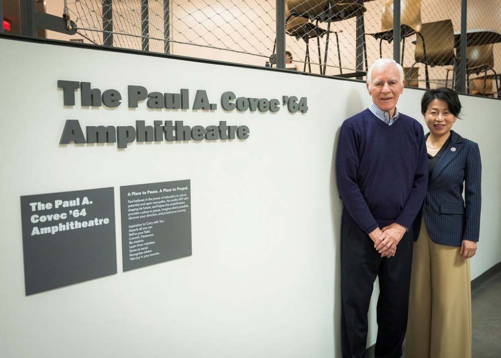 Worcester Polytechnic Institute (WPI) has received a $3 million gift from Paul Covec ’64 to support big ideas and bold visions from WPI faculty and students. Covec’s gift, which supports Beyond These Towers: The Campaign for Worcester Polytechnic Institute fundraising initiative, establishes the Paul A. Covec ’64 Innovation and Commercialization Fund. This fund puts Covec’s values into action, leveraging his philanthropy to have an enduring and durable impact on innovation at WPI. The amphitheatre in WPI’s Innovation Studio has been named the Paul A. Covec ’64 Amphitheatre in recognition of his philanthropy and sustaining legacy at his alma mater.