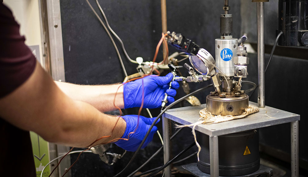 He is collaborating with Geoffrey Tompsett, WPI assistant research professor in Chemical Engineering to study hydrothermal liquefaction, which is another thermal process used to