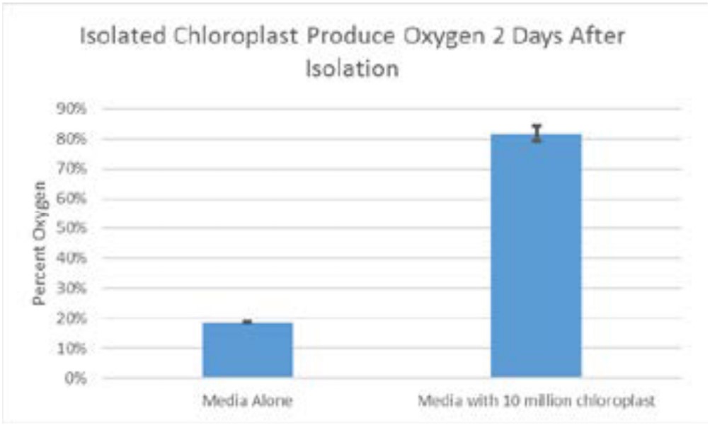 This approach is the first to detail the isolation of chloroplasts specifically from spinach leaves. It is also novel in its demonstration of the ability to integrate isolated chloroplasts within human cells. This intracellular incorporation of chloroplasts should allow for greatly improved oxygen production to be used in possible cell therapies or biotechnology production plants.
