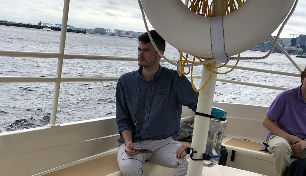 Taking a water taxi tour of the Boston Harbor and Chelsea as part of the project field work